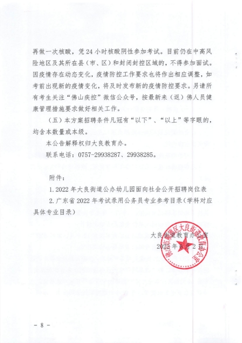 附件1:2022年大良街道公辦幼兒園面向社會公開招聘崗位表.doc