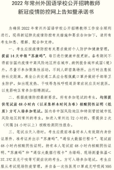 2.2022年常州外國語學(xué)校公開招聘教師新冠疫情防控網(wǎng)上告知暨承諾書