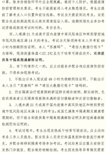 4.參加筆試人員應(yīng)攜帶準(zhǔn)考證、身份證以及本人參加考試開考前48小時內(nèi)(以采樣時間為準(zhǔn))新冠病毒核酸檢測陰性證明(紙質(zhì)版),按照規(guī)定的時間到考點(diǎn)參加筆試。筆試期間須遵守《附件2》中明確的疫情防控要求,并配合做好疫情防控相關(guān)工作。