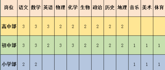 (所學專業(yè)應與應聘學科一致或者相近,有三年以上一線教學工作經(jīng)驗和一定的特長技能者優(yōu)先。資深教師學歷要求可適當放寬。)