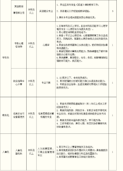 2.按國(guó)家規(guī)定辦理"五險(xiǎn)一金",并免費(fèi)(外地教職工)提供酒店式公寓及餐費(fèi)補(bǔ)貼;