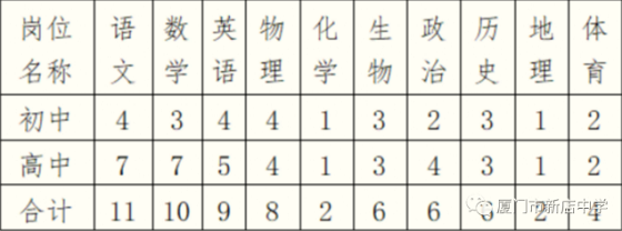 因工作需要,廈門市新店中學(xué)擬面向社會(huì)公開招聘非在編代課教師共64名,現(xiàn)將有關(guān)事項(xiàng)公布如下: