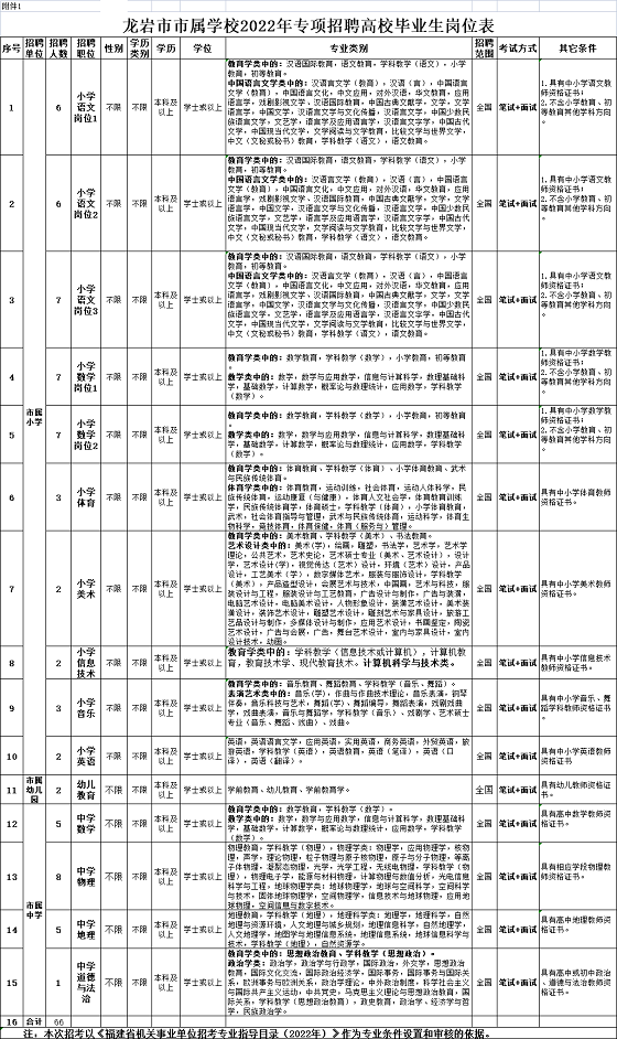 1.龍巖市市屬學校2022年專項招聘高校畢業(yè)生崗位表