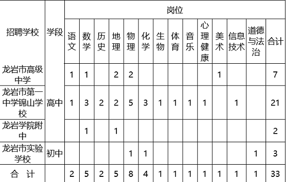 市屬中學數(shù)學、地理、物理、道德與法治學科崗位具體要求詳見《龍巖市市屬學校2022年專項招聘高校畢業(yè)生崗位表》(附件1)。