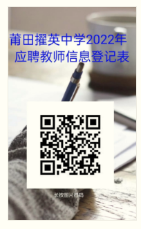 (1)關(guān)注微信公眾號(hào)“莆田擢英中學(xué)官方號(hào)”,查看招聘公告,掃碼填寫報(bào)名表;虻顷懫翁镞⒅袑W(xué)校園網(wǎng)(www.ptzyzx.com)信息公開欄—招聘信息,查看招聘公告,并掃碼填寫報(bào)名表。