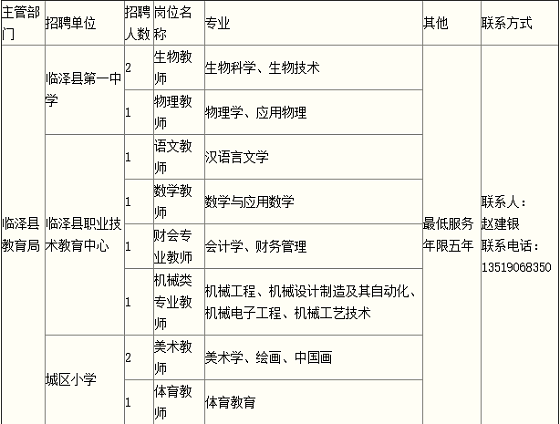 城區(qū)中小學引進急需緊缺教師10名,其中:臨澤縣第一中學3名,臨澤縣職業(yè)技術中心4名(其中文化課2名,專業(yè)課2名),城區(qū)小學3名。