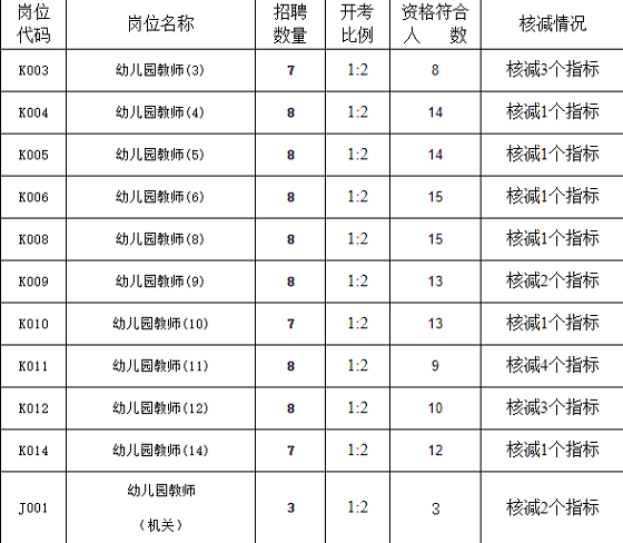 根據(jù)《2022年昆山市教育系統(tǒng)公開招聘幼兒園備案制教師簡章》規(guī)定,經(jīng)網(wǎng)上報名和資格確認,現(xiàn)對部分未達開考比例的崗位進行招聘指標核減。