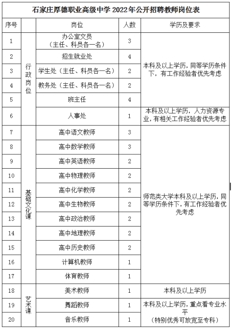 8.要求:教學(xué)崗位,要求具有教師資格證、二級(jí)乙等及以上普通話證書(shū);行政崗位,要求具有本科及以上學(xué)歷;