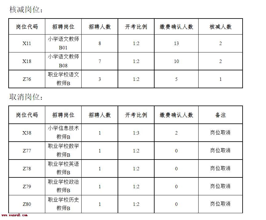 根據(jù)《常熟市2022年教育系統(tǒng)公開招聘中小學(xué)教師(含職業(yè)學(xué)校)公告》規(guī)定,繳費結(jié)束后,對部分未達到開考比例的招聘崗位進行核減(取消),應(yīng)聘崗位被取消的報名成功人員可在2022年6月26日16﹕00前改報其他符合條件的崗位,逾期未改報視作放棄報名資格。具體核減(取消)崗位如下:
