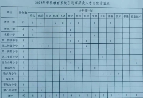 1.2022年曹縣教育系統(tǒng)引進(jìn)高層次人才崗位計(jì)劃表