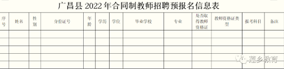 附件:廣昌縣2022年合同制教師招聘預(yù)報名信息表