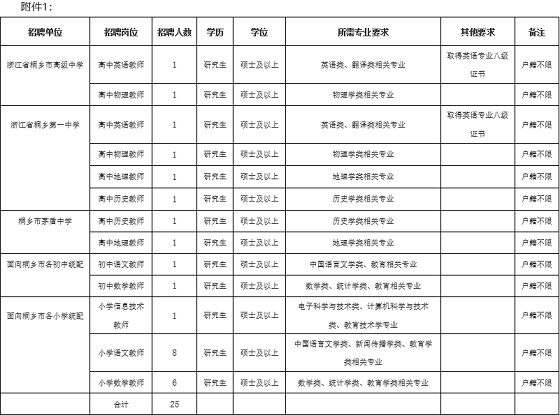 具體崗位計(jì)劃、資格要求詳見《2022年桐鄉(xiāng)市教育系統(tǒng)招聘高層次人才崗位計(jì)劃表》(附件1)。