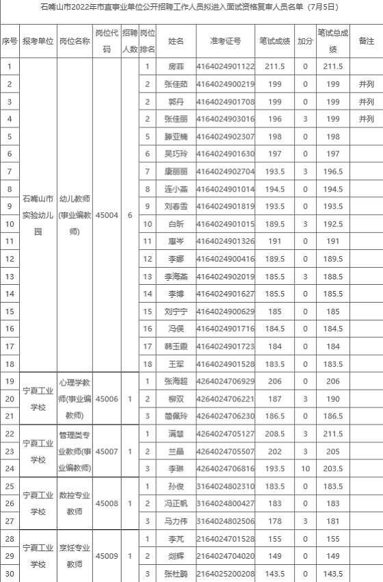 附件:1.石嘴山市2022年市直事業(yè)單位公開招聘工作人員擬進入面試資格復審人員名單(7月5日)