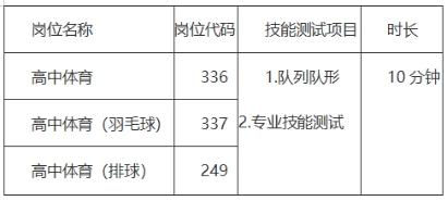 ②面試、試教、技能測(cè)試滿(mǎn)分均為100分。面試(3分鐘)、試教(10分鐘)時(shí)長(zhǎng)共13鐘,備課時(shí)間40分鐘。技能測(cè)試辦法見(jiàn)下表:
