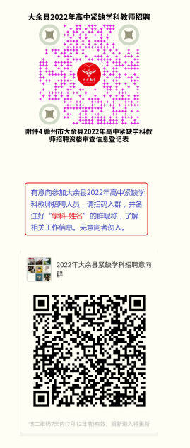 5.2022年大余縣緊缺學(xué)科招聘意向群二維碼