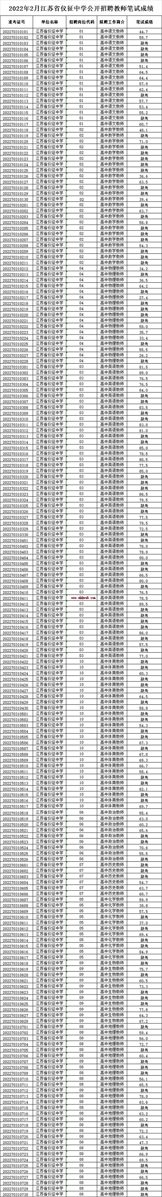 2022年2月江蘇省揚(yáng)州儀征中學(xué)公開招聘教師筆試成績