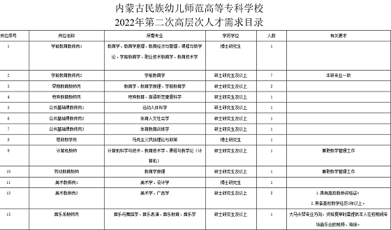 附件:《內(nèi)蒙古民族幼兒師范高等專科學(xué)校2022年第二次高層次人才需求目錄》