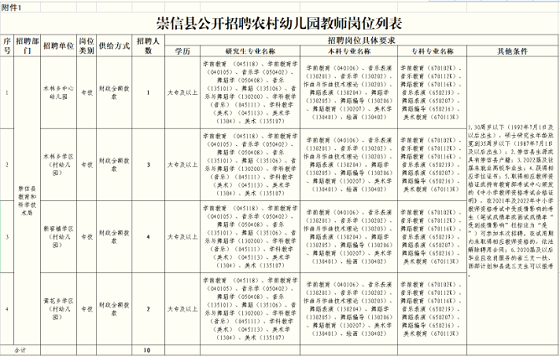 (五)具有招聘崗位所需專業(yè)的學(xué)歷學(xué)位、專業(yè)知識和業(yè)務(wù)能力。詳見《崇信縣2022年公開招聘農(nóng)村幼兒園教師崗位列表》(附件1);