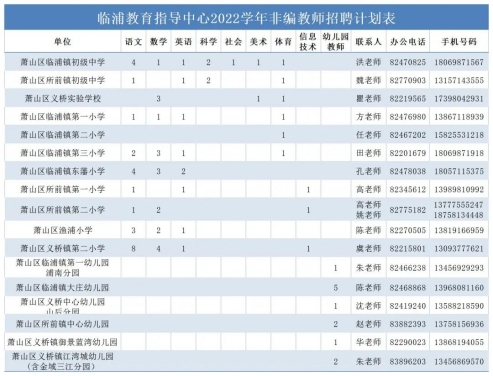 臨浦片2022年公辦中小學(幼兒園)招收自聘非編教師計劃表