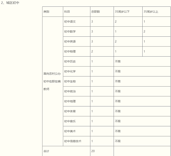 (2)城區(qū)初中教師崗位面向農(nóng)村公辦初中在職在編教師選調(diào);