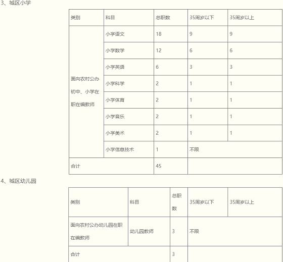 (3)城區(qū)小學(xué)崗位面向農(nóng)村公辦初中和小學(xué)在職在編教師選調(diào);