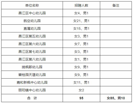 為了優(yōu)化昌江區(qū)公辦幼兒園教師結(jié)構(gòu),促進全區(qū)學(xué)前教育事業(yè)健康發(fā)展,現(xiàn)面向社會公開招聘合同制幼兒教師95名(其中:女教師85名、男教師10名)。