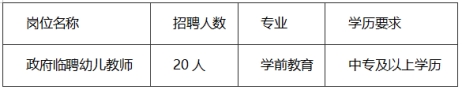 為加強學前教育教師隊伍建設,充實師資力量,優(yōu)化隊伍結構,全面推動學前教育事業(yè)健康發(fā)展。擬公開招聘政府臨聘幼兒教師20名,現將有關事宜公告如下: