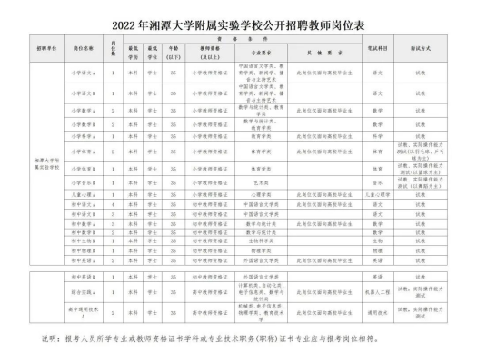 招聘具體事宜及崗位要求詳情請(qǐng)參照《2022年湘潭市市直教育系統(tǒng)公開招聘教師公告》