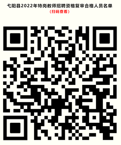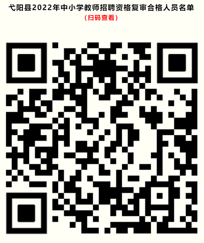 根據(jù)《關(guān)于做好2022年全省中小學教師招聘工作的通知》(贛教師字〔2021〕27號)、《江西省2022年中小學教師招聘公告》和《江西省2022年“農(nóng)村義務教育階段學校教師特設崗位計劃”教師招聘公告》等文件精神,7月19日,弋陽縣人力資源和社會保障局、弋陽縣教育體育局發(fā)布《2022年江西省中小學教師招聘弋陽縣崗位第一批筆試入闈人員現(xiàn)場資格復審公告》和《2022年江西省特崗教師招聘弋陽縣崗位第一批筆試入闈人員現(xiàn)場資格復審公告》,并于7月21日至22日對各招聘崗位筆試入闈(含調(diào)劑入闈)人員進行現(xiàn)場資格復審,現(xiàn)將資格復審合格人員名單公示如下(詳見二維碼)。