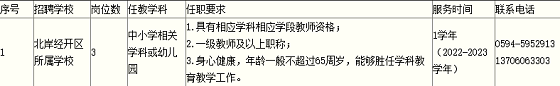 根據(jù)市政府統(tǒng)一部署和《莆田市銀發(fā)教師教學計劃實施方案(試行)》(莆教〔2020〕10號)精神和要求,結合北岸經(jīng)開區(qū)實際,制定2022年莆田市湄洲灣北岸經(jīng)濟開發(fā)區(qū)中小學校公開招聘銀發(fā)教師方案,現(xiàn)將有關事項通告如下: