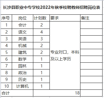 長(zhǎng)沙縣職業(yè)中專(zhuān)學(xué)校是長(zhǎng)沙縣內(nèi)唯一一所公辦職業(yè)學(xué)校,也是國(guó)家級(jí)重點(diǎn)、省示范職業(yè)學(xué)校和湖南省卓越職業(yè)學(xué)校。因?qū)W校發(fā)展需要,學(xué)校擬聘請(qǐng)18名校聘教師。