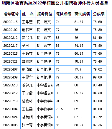 附件:海陵區(qū)教育系統(tǒng)2022年校園公開(kāi)招聘教師體檢人員名單