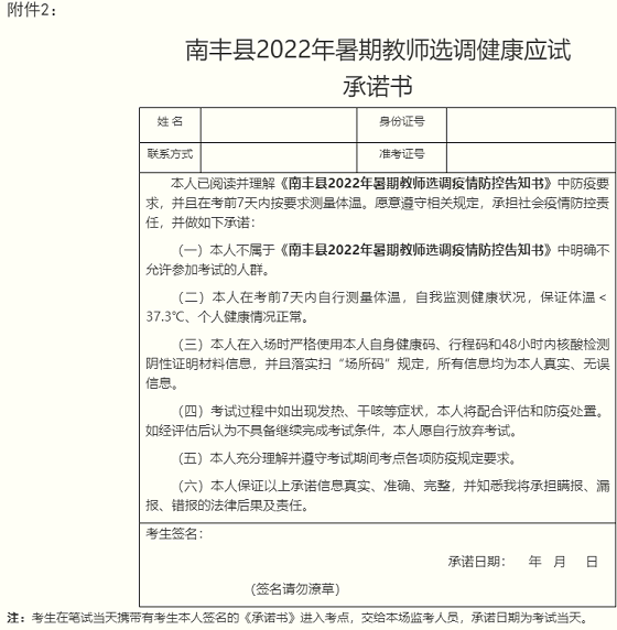 2.南豐縣2022年暑期教師選調(diào)健康應(yīng)試承諾書.docx