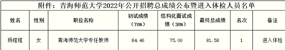 附件:青海師范大學(xué)2022年公開招聘總成績公布暨進(jìn)入體檢人員名單