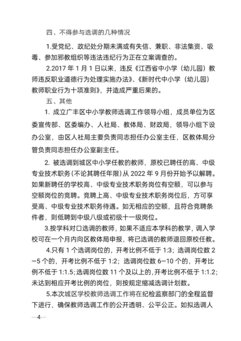 廣豐區(qū)2022年中小學(xué)教師選調(diào)考試報名及積分審核辦法