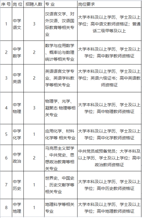 招聘范圍:招聘年齡35周歲以下(截至到報名日期),大學本科及以上學歷、學士及以上學位,具有高中對應學科教師資格證書。教育教學經(jīng)驗豐富、有突出業(yè)績者年齡可適當放寬到40歲。