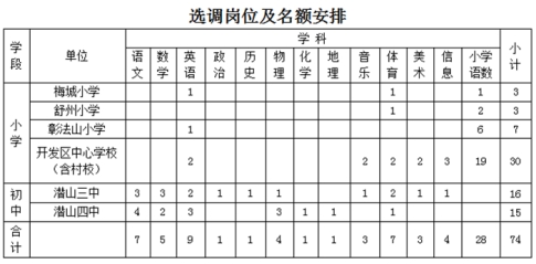 2022年城區(qū)學(xué)校擬選調(diào)教師合計(jì)74名。具體選調(diào)崗位和名額分配如下表: