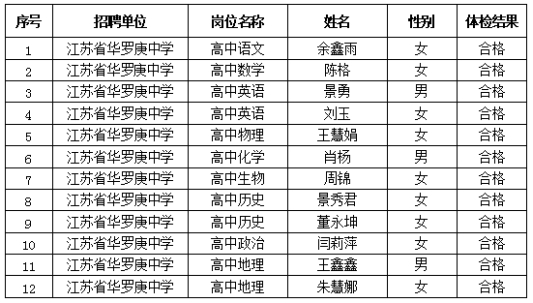 2022年常州市金壇區(qū)“優(yōu)才計(jì)劃”公開(kāi)招聘教師體檢合格人員名單公示