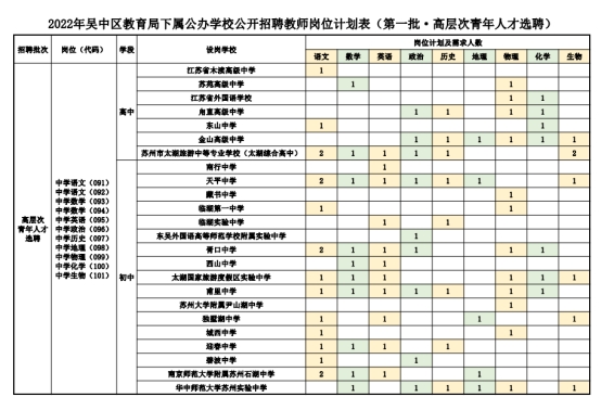 2022年蘇州吳中區(qū)教育局下屬公辦學(xué)校公開招聘教師崗位計(jì)劃表(第一批·高層次青年人才選聘)