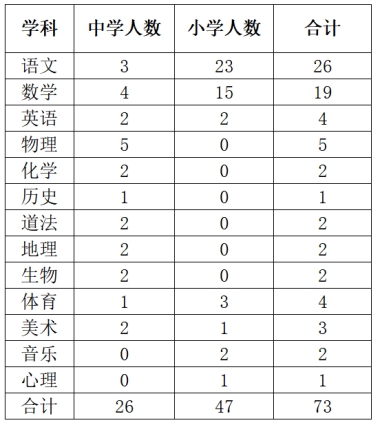 本次招聘非編制教師73名,具體招聘崗位及人數(shù)見《西區(qū)街道2022年招聘公辦中小學非編制教師崗位表》。