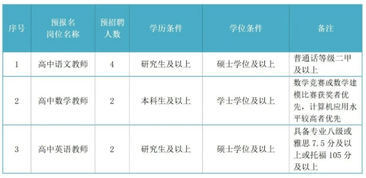 全日制本科及以上學(xué)歷,所學(xué)專業(yè)對口,具備高級中學(xué)教師資格條件,能勝任高中教育教學(xué)工作,班級管理能力強(qiáng)。