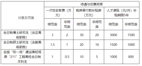 (三)符合條件的,享受一次性安家補(bǔ)貼、購房首付款補(bǔ)貼券及人才津貼等待遇,具體標(biāo)準(zhǔn)如下: