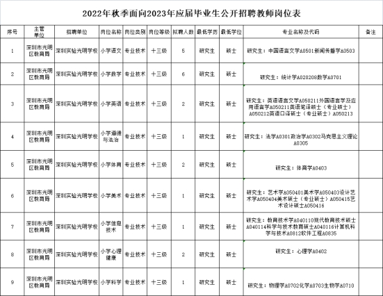 附件1:深圳實(shí)驗(yàn)光明學(xué)校2022年秋季面向2023年應(yīng)屆畢業(yè)生公開招聘教師崗位表