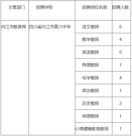注:各高,F(xiàn)場(chǎng)報(bào)名具體地址屆時(shí)請(qǐng)關(guān)注內(nèi)江六中招聘工作告示牌。鑒于高校疫情防控管理要求,請(qǐng)非現(xiàn)場(chǎng)報(bào)名點(diǎn)高校的外校畢業(yè)生于10月22日8:30~11:30到內(nèi)江六中興隆校區(qū)現(xiàn)場(chǎng)報(bào)名并參加考核工作。