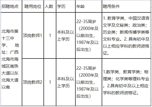 本次招聘工作由北海市第十三中學(xué)招聘領(lǐng)導(dǎo)小組組織實施并對招聘工作進(jìn)行監(jiān)督。