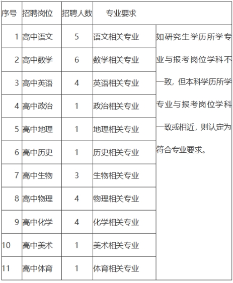 1.具有碩士研究生及以上學(xué)歷,在職教師和社會(huì)人員須在2022年12月5日前取得學(xué)歷學(xué)位證書(shū),應(yīng)屆畢業(yè)生須在2023年8月31日前取得學(xué)歷學(xué)位證書(shū)。具有教師系列高級(jí)專(zhuān)業(yè)技術(shù)資格的,學(xué)歷學(xué)位可放寬至本科,所學(xué)專(zhuān)業(yè)和報(bào)考崗位學(xué)科須一致或相近。