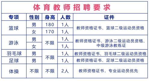 07、藝體中心招聘體育教師還需符合招聘崗位中的要求。