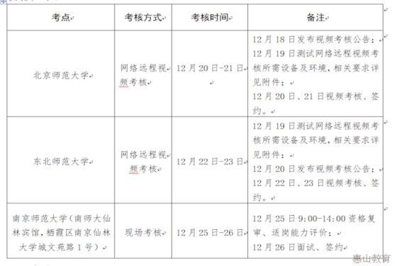 根據(jù)《無錫市惠山區(qū)教育局選聘優(yōu)秀青年人才公告》(錫人社事招公告核[2022]70號),應(yīng)聘者在通過資格初審且報名繳費后,選聘單位將組織對所有報名成功的應(yīng)聘者進行現(xiàn)場資格復(fù)審和考核。本次招聘第二批考點為北京師范大學考點、東北師范大學考點和南京師范大學考點,考核安排如下: