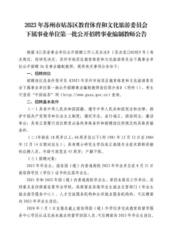 附件1:2023年蘇州市姑蘇區(qū)教育體育和文化旅游委員會(huì)下屬事業(yè)單位公開(kāi)招聘事業(yè)編制教師崗位簡(jiǎn)介表.xls