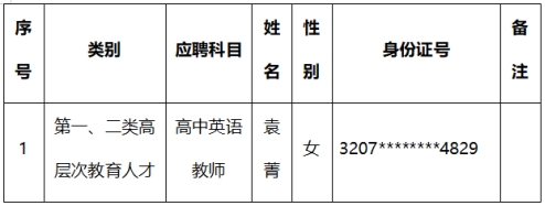 根據(jù)《2022年蘇州高新區(qū)教育系統(tǒng)公開招聘事業(yè)編制高層次、緊缺型教育人才公告》,經(jīng)過報(bào)名、試教、面試、體檢和政審,擬錄用以下同志,現(xiàn)公示如下: